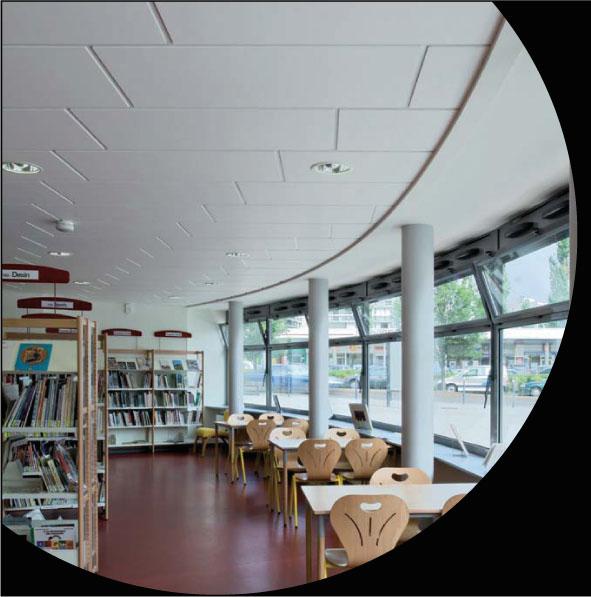 Par son aspect décoratif blanc mat et ses performances acoustiques, le plafond MOASA s’utilise dans tous les types de locaux du secteur tertiaire ; bureaux, commerces, salles polyvalentes, locaux scolaires…